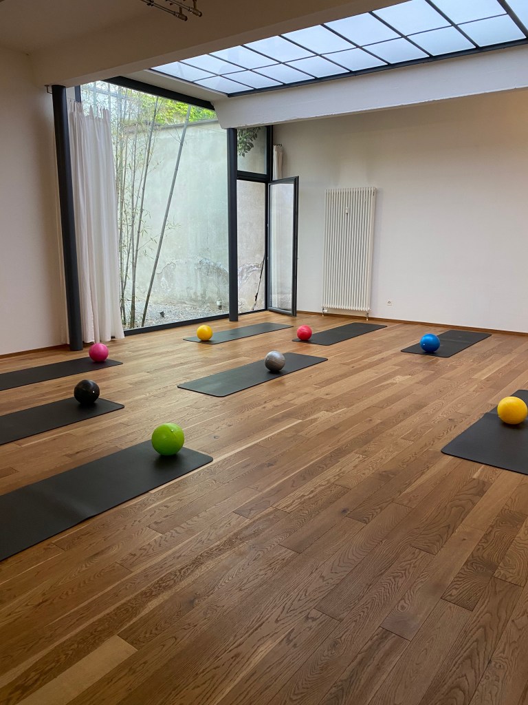 Pop Pilates is a 50-minute, mat-based Pilates workout set to upbeat pop music, designed for all levels of experience. It focuses on strengthening your core, back, legs, and arms in a fun, high-energy way. Classes are held in English if there are English speakers present, otherwise they’re conducted in German.